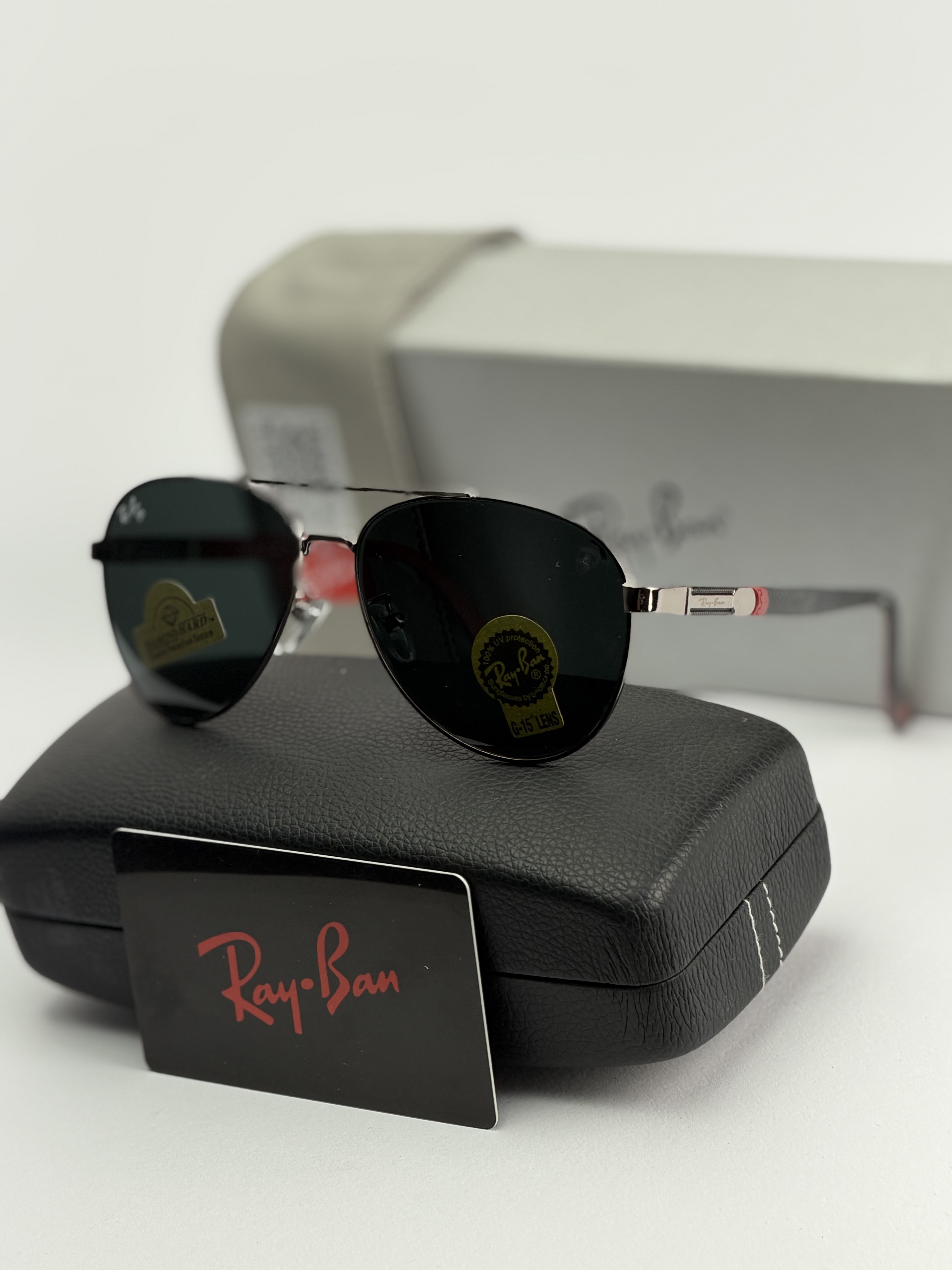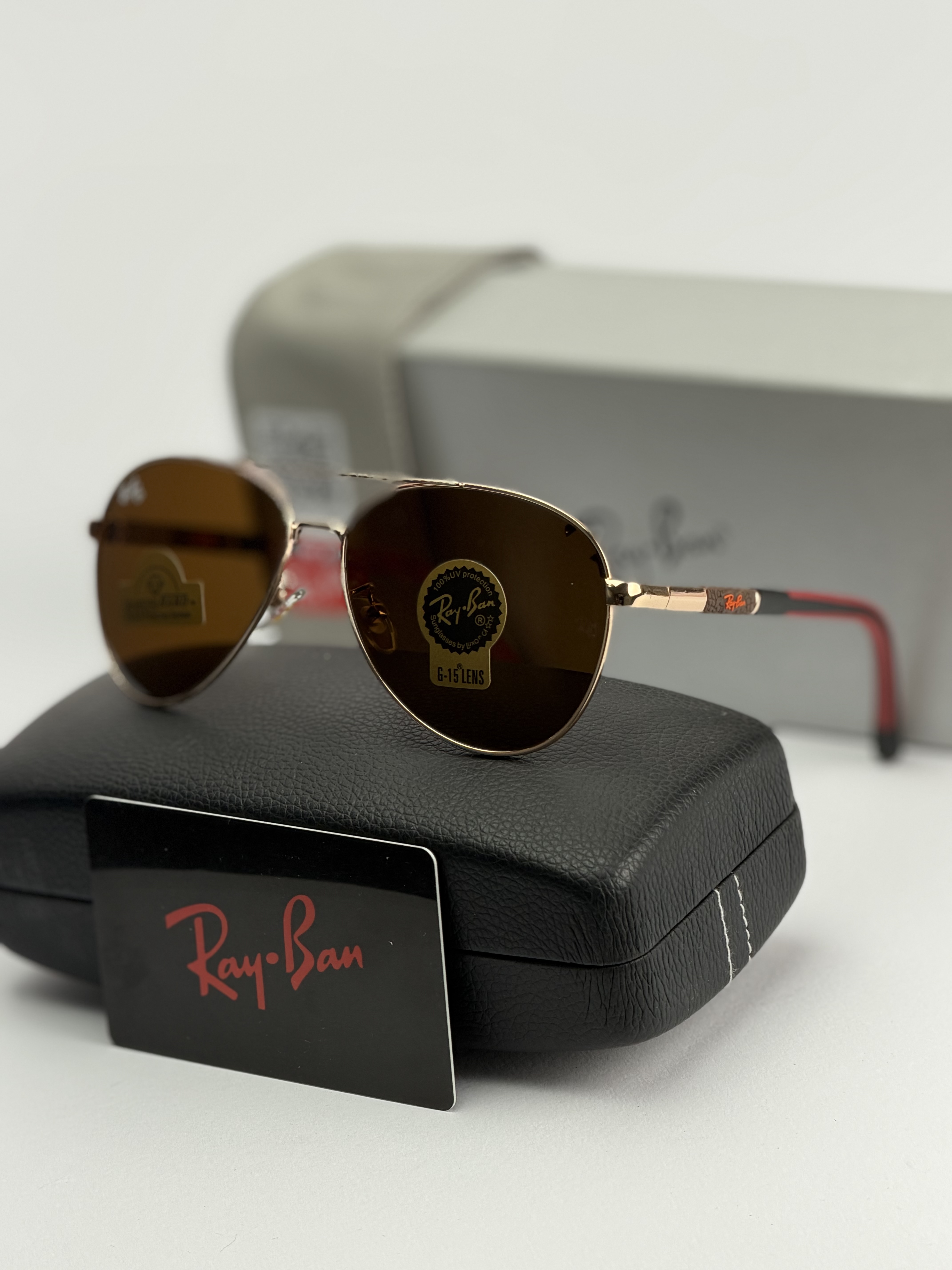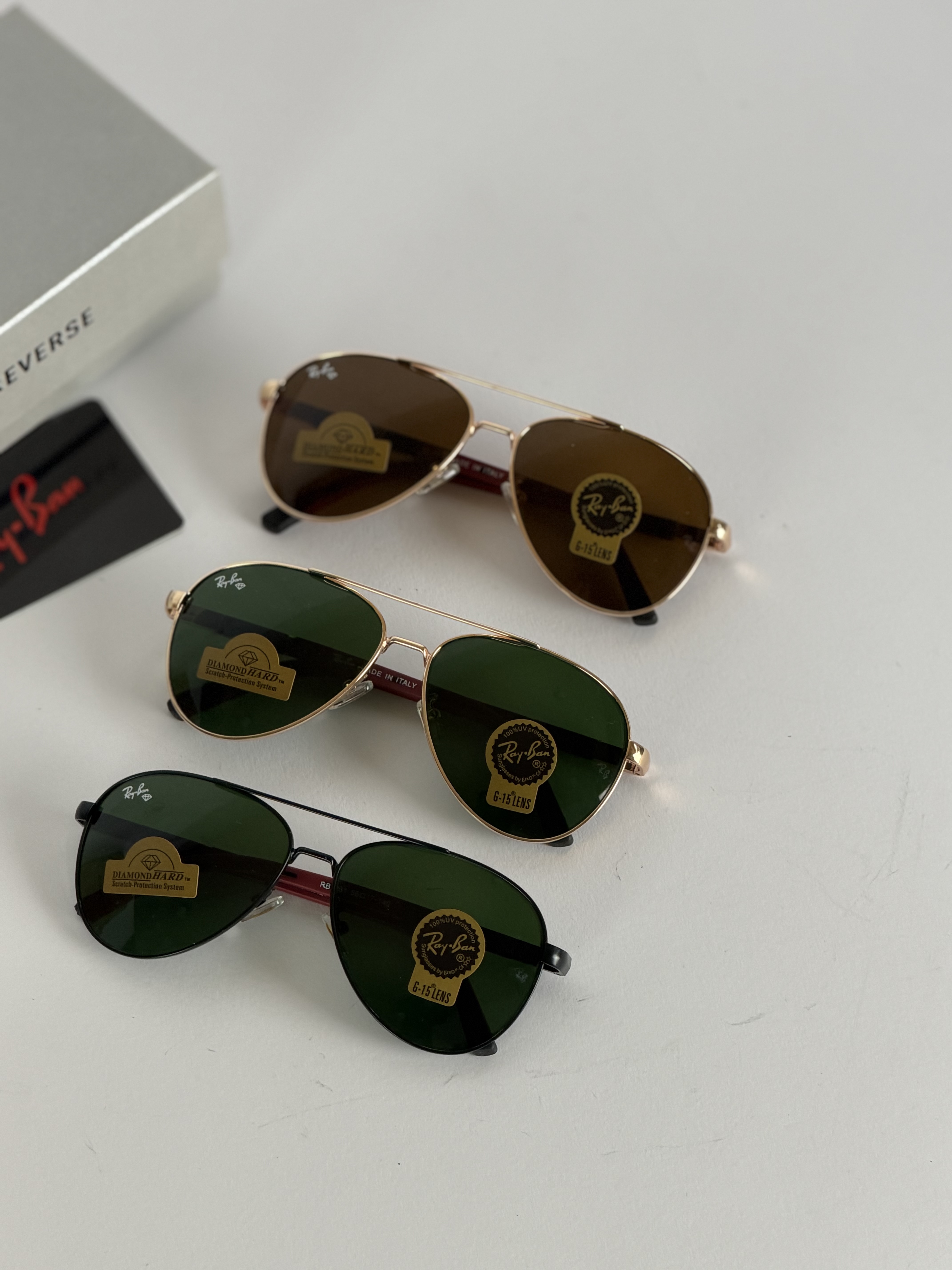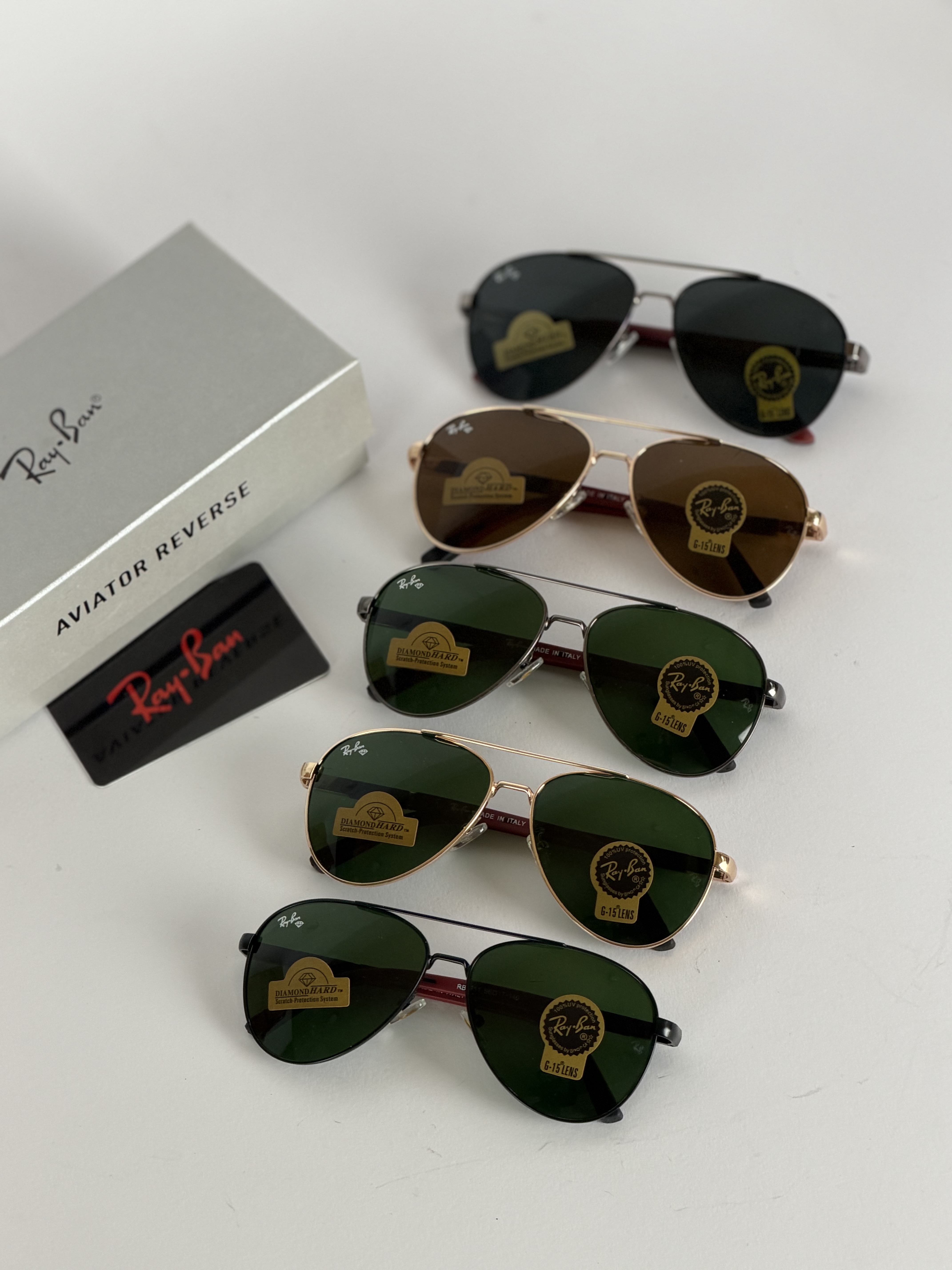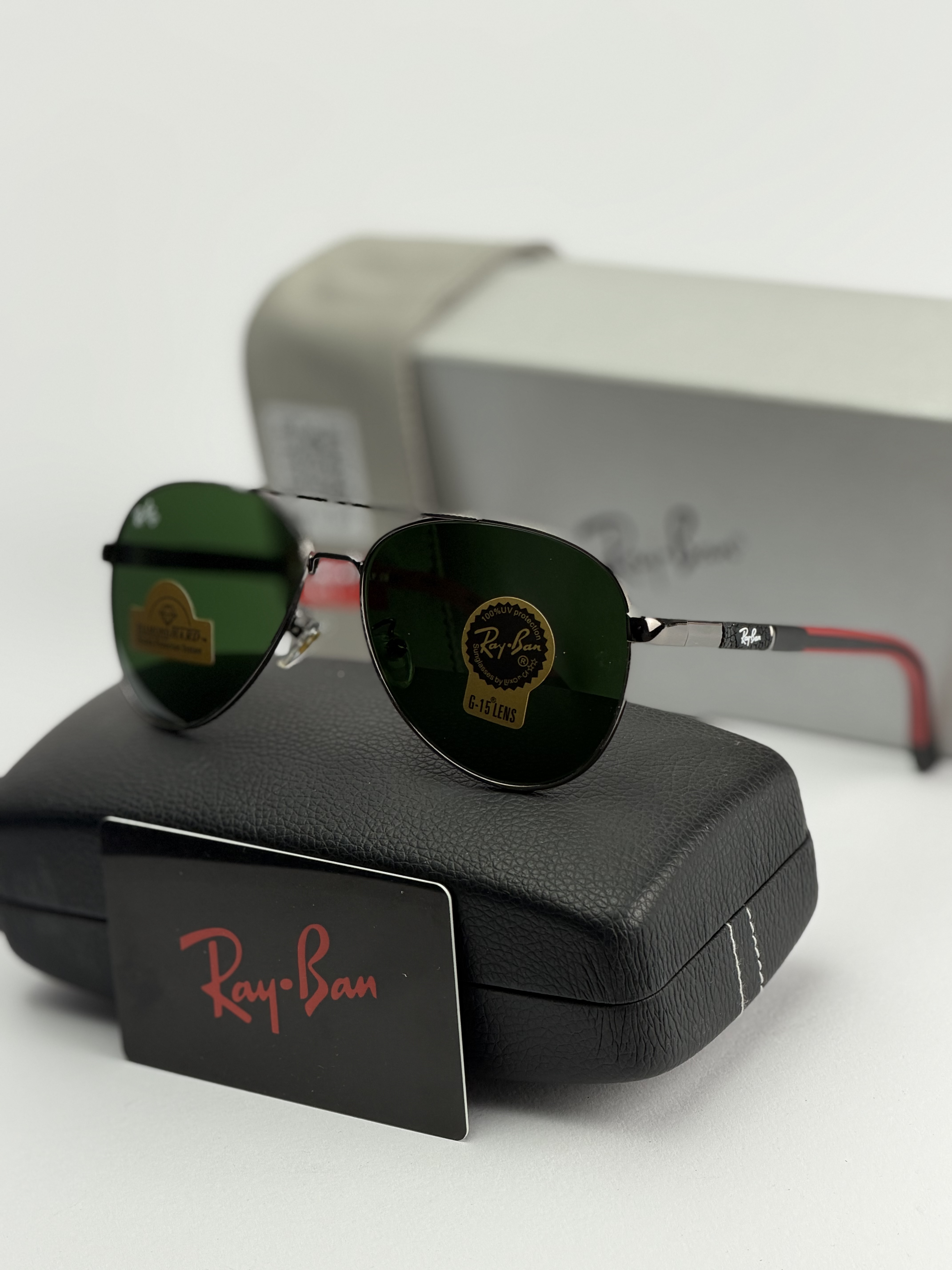 عینک افتابی ریبن خلبانی دسته فنری عدسی شیشه سنگ